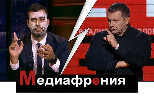Довольно унылая история о том, как поссорились Иван Андреевич с Владимиром Рудольфовичем наводит на размышления о двух разных процессах. Один из них происходит в головах и душах служителей телевизора. От постоянного нахождения в этом ящике они полностью утрачивают всякую связь с реальностью. Начинают себя воображать царями, богами, отождествляют себя со страной или как минимум с каналом. Чувство собственного достоинства у них разрастается до таких размеров, что мешает при ходьбе, спать им приходится стоя, а в самолете они вынуждены покупать два билета: один для себя, другой для своего достоинства. При этом про наличие чувства собственного достоинства у других людей обитатели телевизора вообще не подозревают, о чем свидетельствует изумительное хамство, с которым общается Соловьев со своими оппонентами.