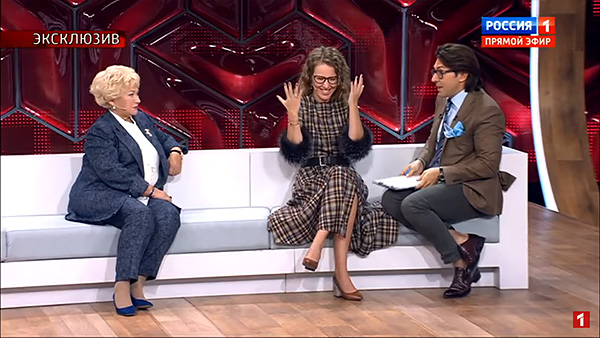 В эфире у Малахова было меньше политических заявлений, но больше человеческой теплоты, поскольку примерно половину эфира вместо Ксении Собчак на вопросы Малахова отвечала ее мама, представляющая в Совете Федерации Республику Тыва, а в эфире Первого канала — свою дочь, которая решила показать, что она готова к президентству тем, что опоздала в эфир на полчаса.