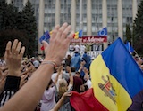В Кишинёве сейчас проходят две акции, одна – очень большая, а другая – очень маленькая. Когда говорят о задержании трёх человек, то речь идёт об участниках протеста, организованного небольшой пророссийской партией «Наш дом – Молдова», называющейся по аналогии с «Наш дом – Россия». Они выступают за максимальное сближение с Россией и интеграцию в Таможенный союз, но в их акции участвовало от 100 до 400 человек по разным данным, а их лидер был задержан возле здания Генеральной прокуратуры. А в главной акции принимало участие, по информации полиции, около 30 000 человек, а по словам организаторов – 100 000.